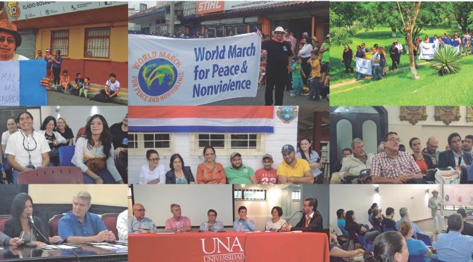 La Marcha Centroamericana inicialmente impulsada por activistas de Mundo sin Guerras y sin Violencia, no hubiera sido posible sin el apoyo de los humanistas y activistas de Costa Rica, de La Comunidad para el Desarrollo Humano, del Centro de Amigos por la Paz, de organizaciones sociales, contra la discriminación de la mujer, de militantes por los derechos de los pueblos marginados, defensores de la diversidad de género o los luchadores por preservar los recursos naturales y el medio ambiente, etc.